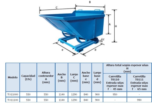 Tolva autobasculante 550 l. uña h=65 mm.