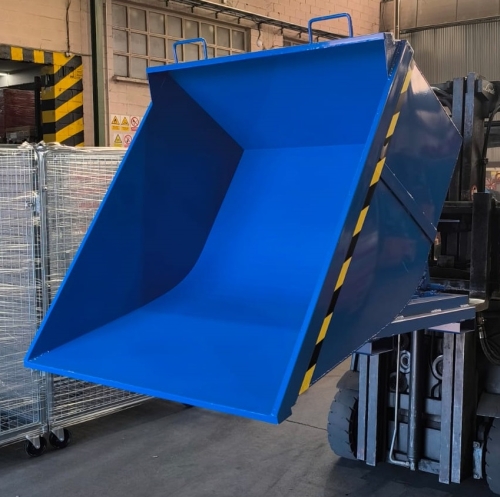 Contenedor para el almacenado, transporte y volteo facil de productos diversos mediante carretilla elevadora. Marcado CE. Fabricación a medida, consultenos. Preparada para coger con carretilla elevadora.
