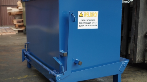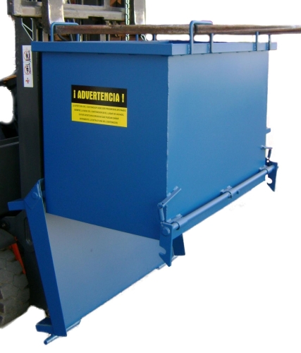 Contenedor con apertura inferior ideal para el transporte de materiales y tratamiento de residuos solidos a granel. El vaciado es total y se realiza mediante el accionamiento de una palanca lateral. Fabricación a medida y varios colores, con o sin ruedas, consultenos.Fabricado en chapa de 2 mm. en el fondo y 2 mm. en los laterales.