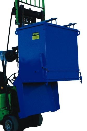 Contenedor con apertura inferior ideal para el transporte de materiales y tratamiento de residuos solidos a granel. El vaciado es total y se realiza mediante el accionamiento de una palanca lateral. Fabricación a medida y varios colores, con o sin ruedas, consultenos.Fabricado en chapa de 2,5 mm. en el fondo y 2 mm. en los laterales.