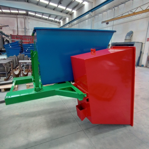 Tolvas basculantes mediante carretilla elevadora con selector de residuos. Construcción estanca. Marcado CE. Medidas 1.660 largo x 1.600 ancho x 1.000 alto.