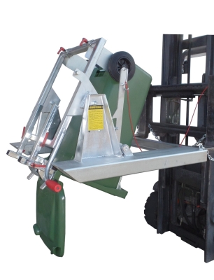Volteador de cubos de basura para carretilla siendo muy útil para realizar tareas como manipulación, transporte y vaciado tanto de cubos de 120 y 240 litros, siempre que no supere de 250 Kg. Fácil manejo y seguro puesto que posee un sistema de accionamiento manual mediante una sirga evitando que el conductor salga de la carretilla para descargar. El cubo puede gira 180º. Estructura muy robusta fabricada en Acero perfilado, y consistente en bastidor básico para la inserción de las uñas de la carretilla. Maneta de sujeción para asegurar un buen amarre a las uñas de la carretilla. Marcado CE. Fabricación a medida, consúltenos.