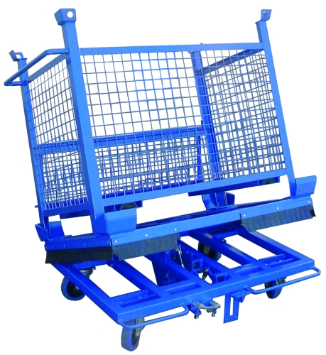 Inclinador hidráulico a pedal de contenedores de 1.200x800 con una capacidad de 500 Kg. Fabricado en acero muy resistente con capacidad de inclinación hasta 20º, 4 ruedas giratorias D.160 de goma azul 2 con freno y dos sin freno. Marcado CE. Fabricación a medida, consúltenos.