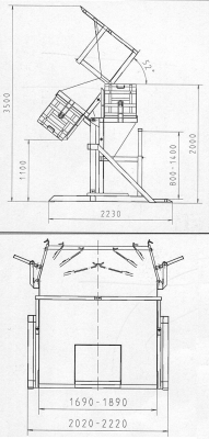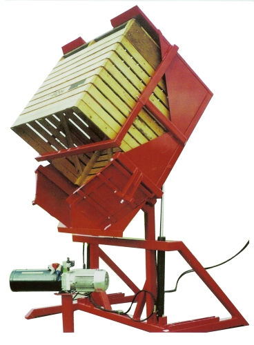 Volteador trifásico 142º para contenedores, fabricado en acero proporcionando una estructura muy robusta, profundidad máxima 120 cm, posibilidad de usar un motor trifásico externo para realizar el control hidráulico.
