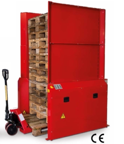 Apila y desapila palets uno a uno. Los palets son manipulados a nivel del suelo.Eleva / desciende la pila permitiendo que el palet sea extraido/introducido a nivel suelo mediante por ejemplo una transpaleta manual. Comandado por un panel tactil ermite alternar entre apilado y dispensado. Capacidad hasta 15 palets.