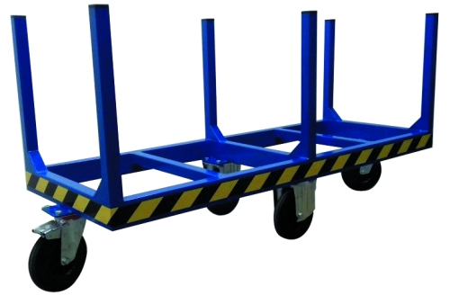 Chariot pour transport de tubes et objets de grande longueur.