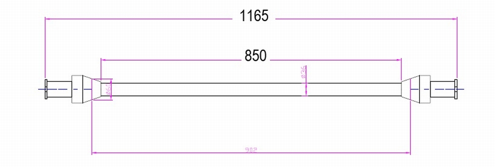 Barra para bobinas com diâmetro 36 mm, comprimento 1.165 mm. Capacidade de carga 1,5 Tn.